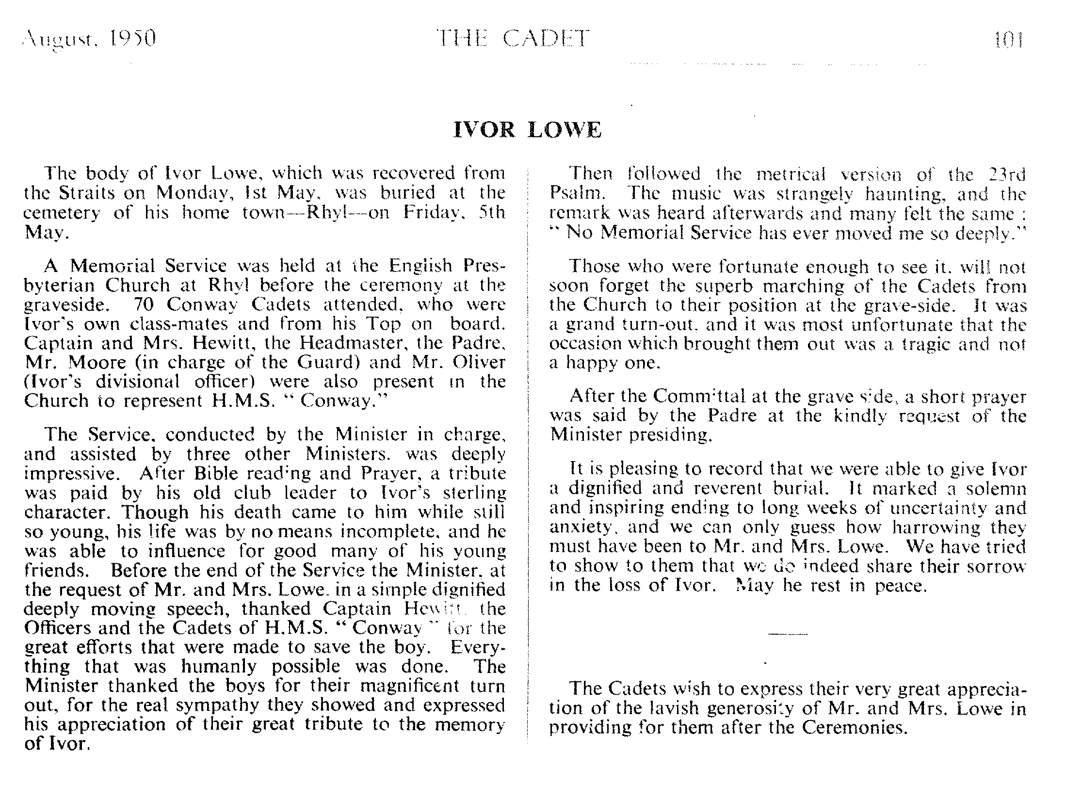Obituary The Cadet 1953