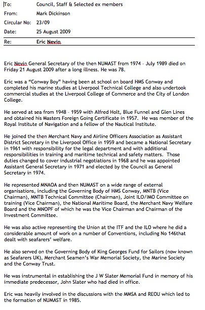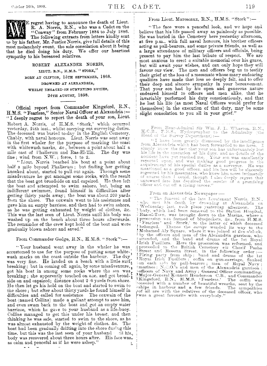 Crossed The Bar at home while a cadet