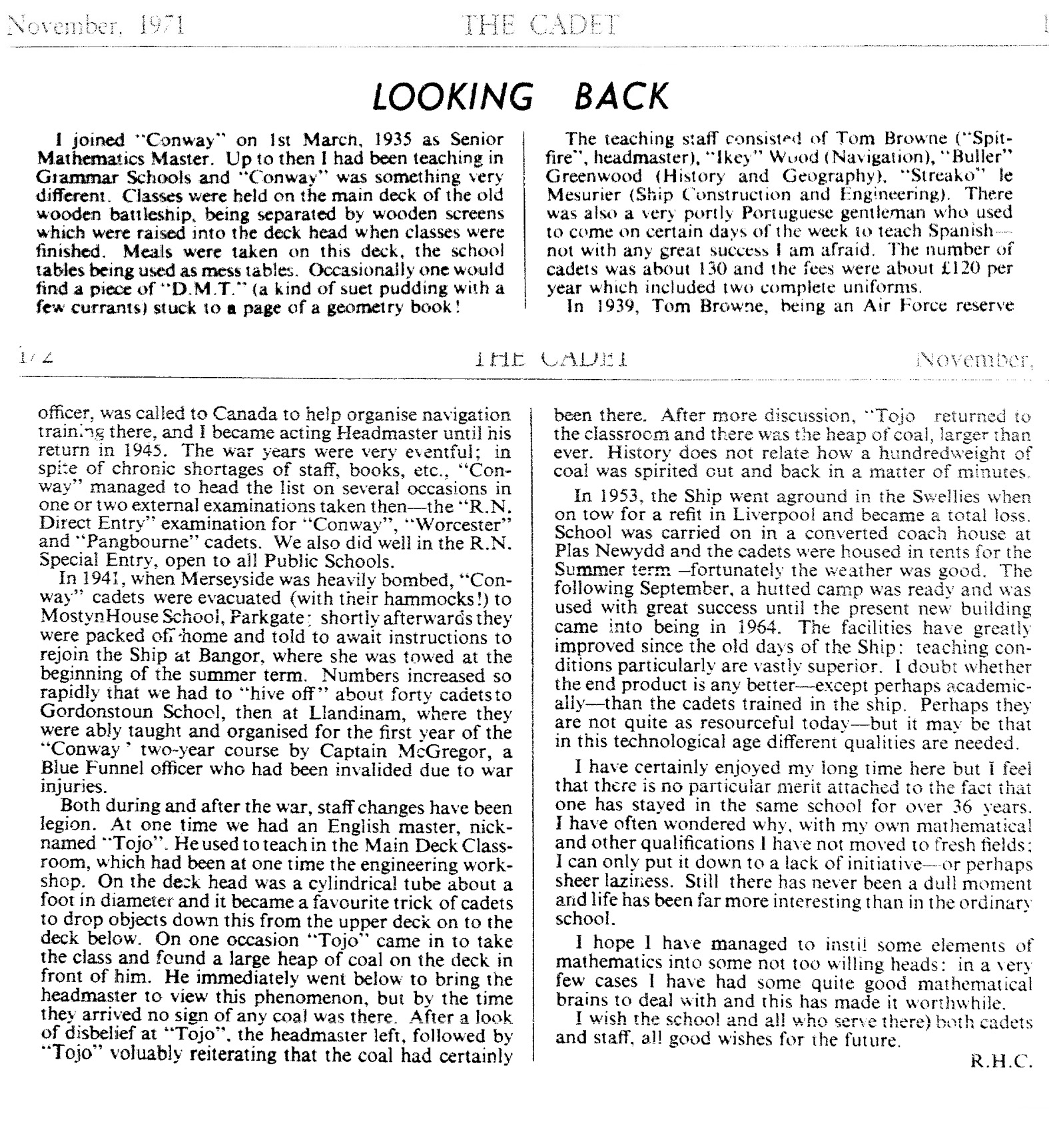 Although a Lt RN who taught Navigation, he was never considered part of the technical staff.