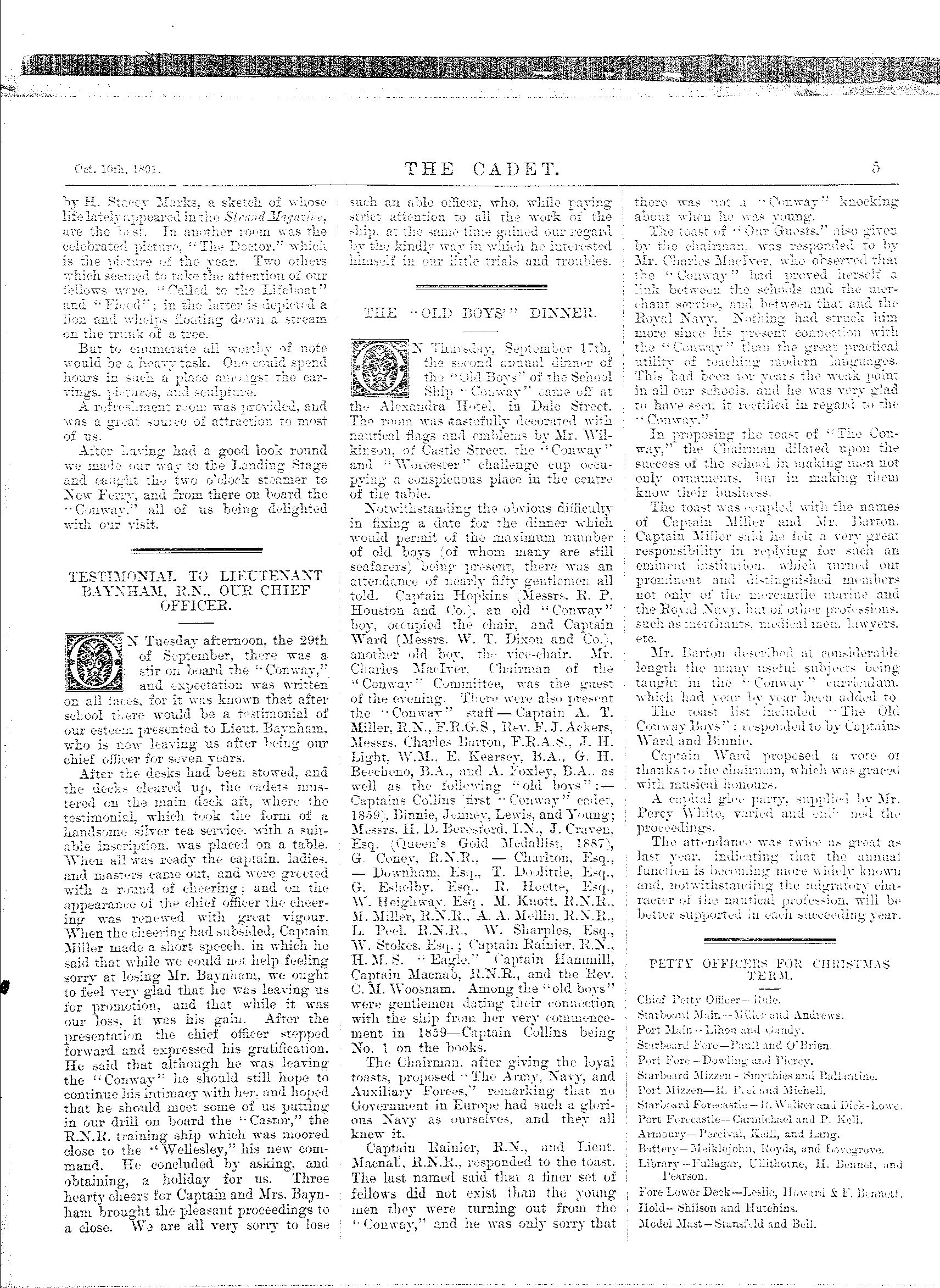 out little trials and troubles". Article from The Cadet Oct 1891 here.