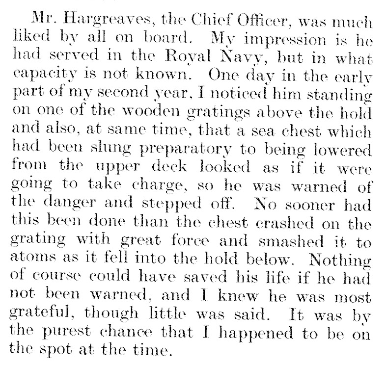 He was Chief Officer in Conway II (ex Winchester). Masefield (a precise man) in his history of the ship refers to him as "The Chief Officer of