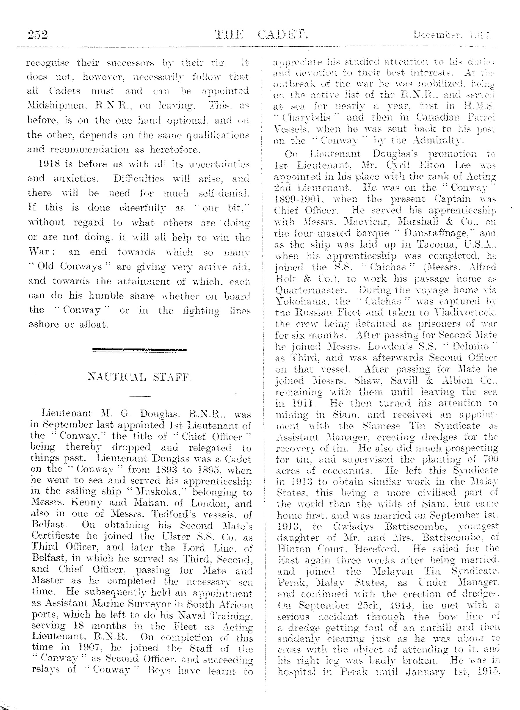 According to The Cadet magazine he was Chief Officer in 36 but this