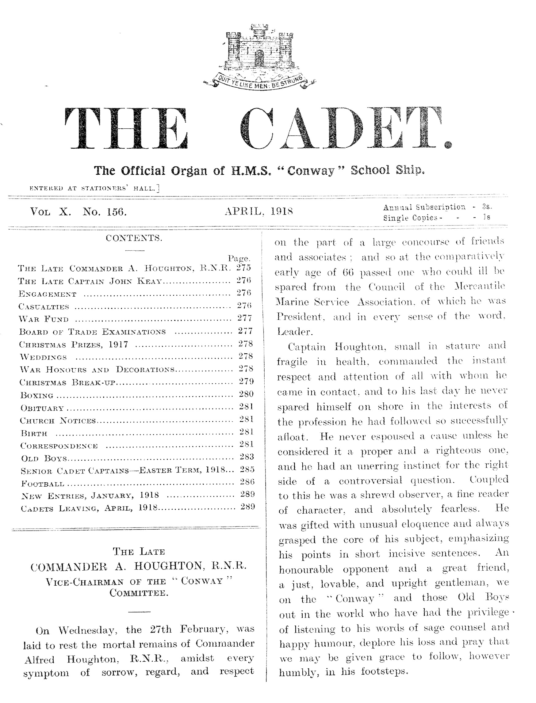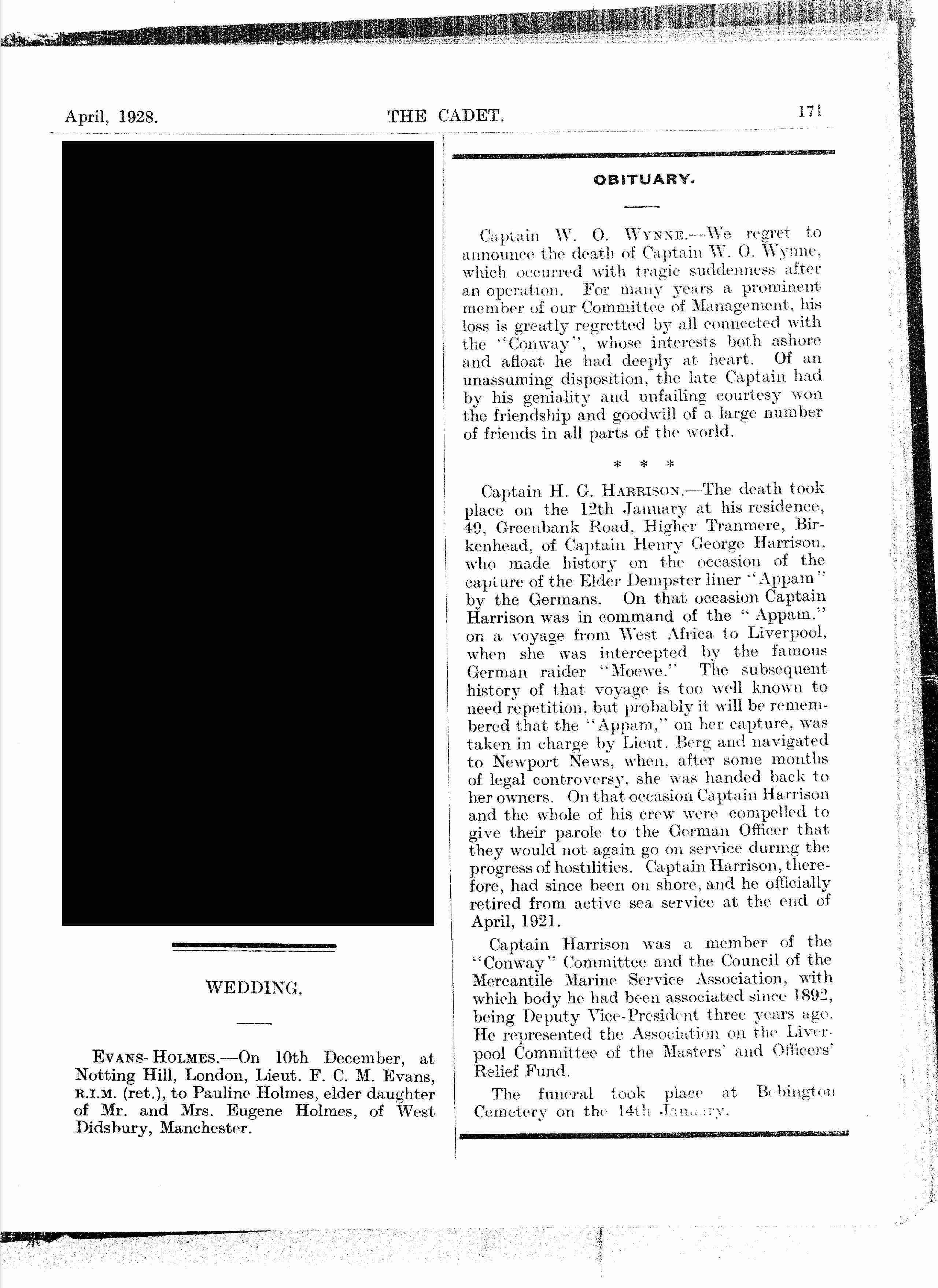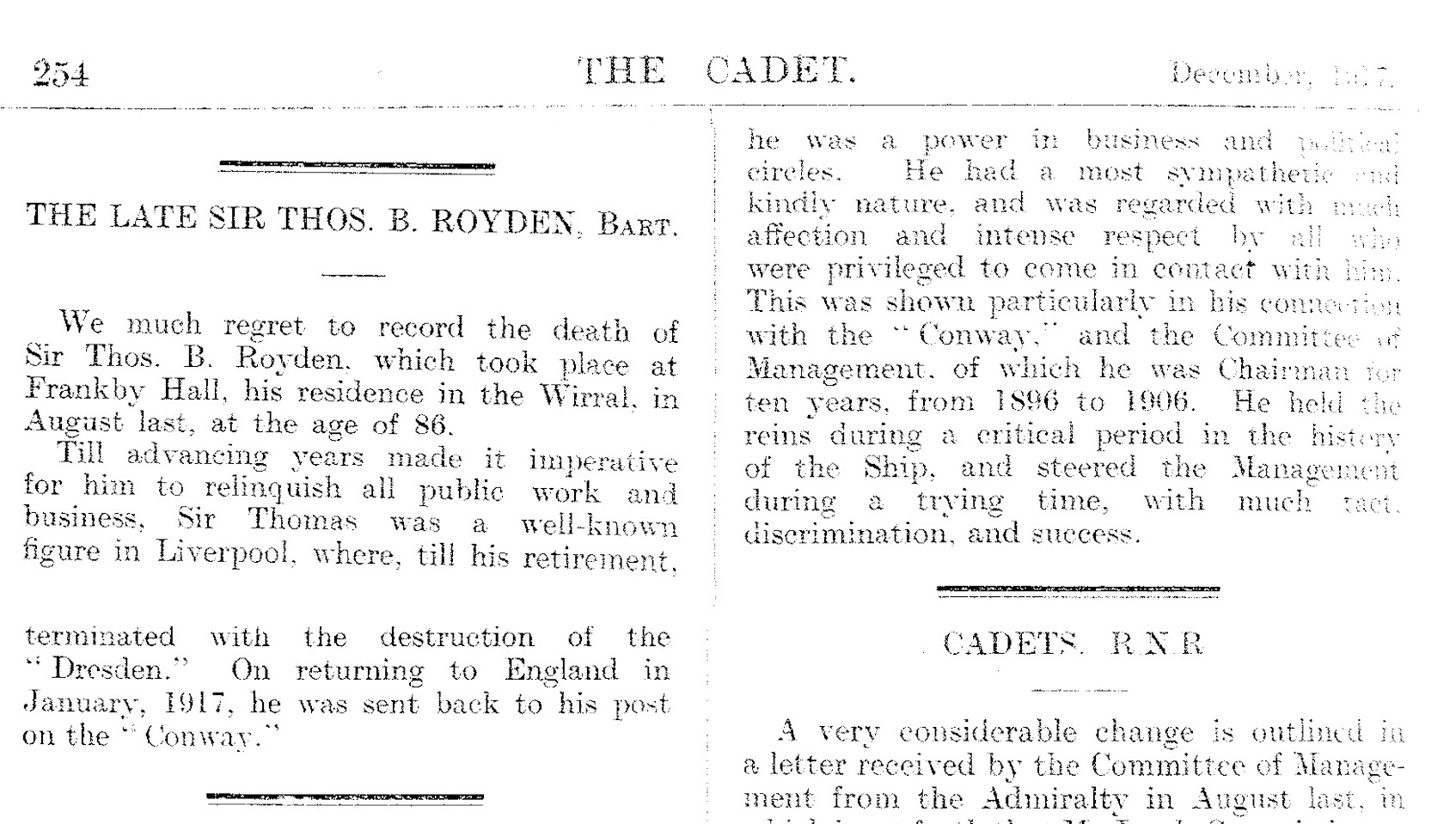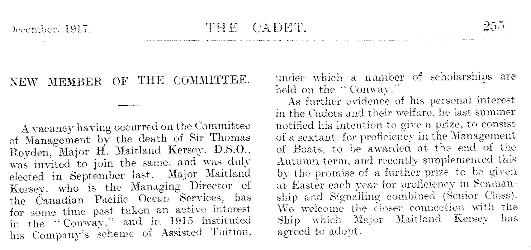 Conway cadet 1868-70Marine Superintendent, Elder Dempster & Co