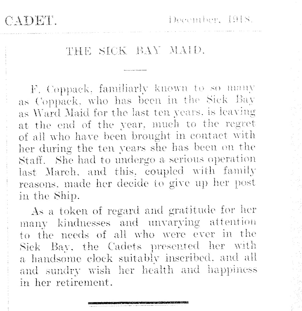 She gave First Aid lectures to the cadets.