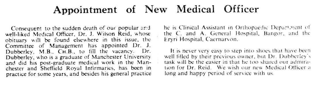 Fell and broke her leg in the Summer of 51 and despite a long recovery she eventually resigned her position.