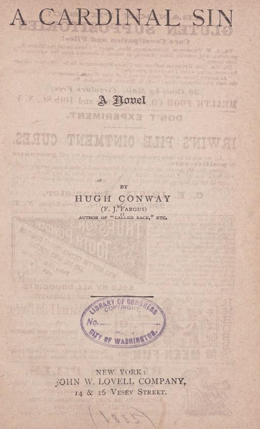 Conway was the pen-name of Frederick John Fargus (1861-62). An injury