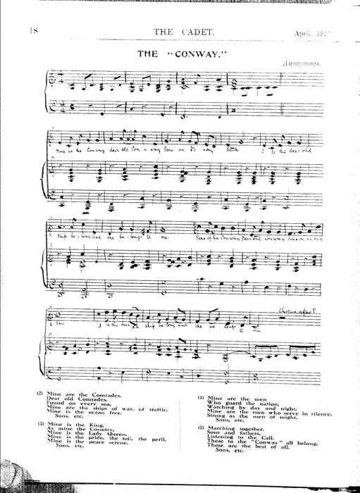 The First Conway Song - A Conway Carol This was published in the Cadet magazine in 1898. It was titled 'A Conway Carol" .